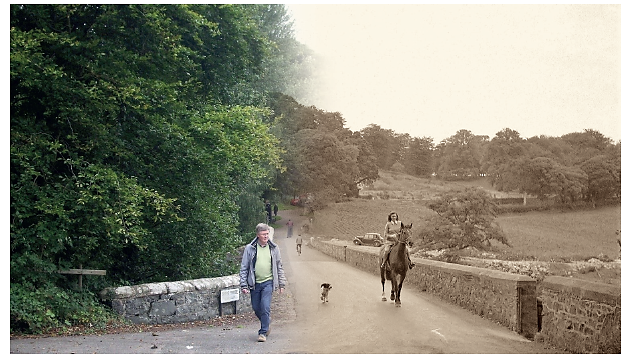 Back in the late 1600s, Shaw’s Bridge was one of the very few crossing points over the River Lagan between the Long Bridge in east Belfast and Lisburn. The picturesque stone bridge in this 1940s scene was constructed in 1709 to replace an earlier wooden bridge built by a Captain Shaw in 1655 to facilitate Oliver Cromwell’s artillery. It was in use as a road bridge until 1977 when the new wider A55 bridge was completed to relieve traffic congestion on this busy thoroughfare. The old bridge has been thoughtfully preserved in the 4,000-acre Lagan Valley Regional Park which includes such varied historical features as elements of the now defunct Lagan Navigation canal (1763), locks and towpath, the Neolithic ‘Giant’s Ring’ which pre-dates the Egyptian pyramids and the more modern Mary Peters Athletic Track.