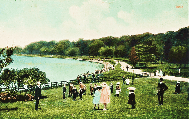 Once the usable bricks resulting from the demolition of Ormeau House had been sold to John Robb for the rebuilding of his warehouse in Castle Place (see Belfast Through Time p.40) the official opening of Ormeau Park was held on Saturday 15th April 1871 and 13,000 spectators attended the event. The Chairman of the Public Parks Committee remarked on ‘the higher orders having their suburban residences and botanical gardens’ whilst ‘the working classes would be able to enjoy their leisure hours on quiet, natural and healthy recreation’. At that time Ormeau Park stretched down to the River Lagan so that visitors could enjoy riverside walks. The Ormeau Embankment road now occupies the site of this footpath.