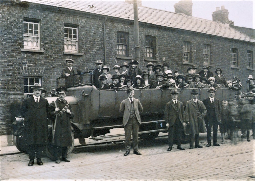 The Royal Bakery was established at 64a Ravenhill Road in the early 1900s. The Proprietor was George Stewart (the lone figure standing centre) and the business was situated on the site of a previous bakery owned by a Mr A.C. Cresswell. This is an early 1920s company charabanc outing (see East Belfast Big Houses p.27) and local businessman Samuel Brown (a brother-in-law of George Stewart) is on board along with his wife Esther and (be-hatted) friends as they look forward to a day out. I wonder why the armed police constable is in the photograph.